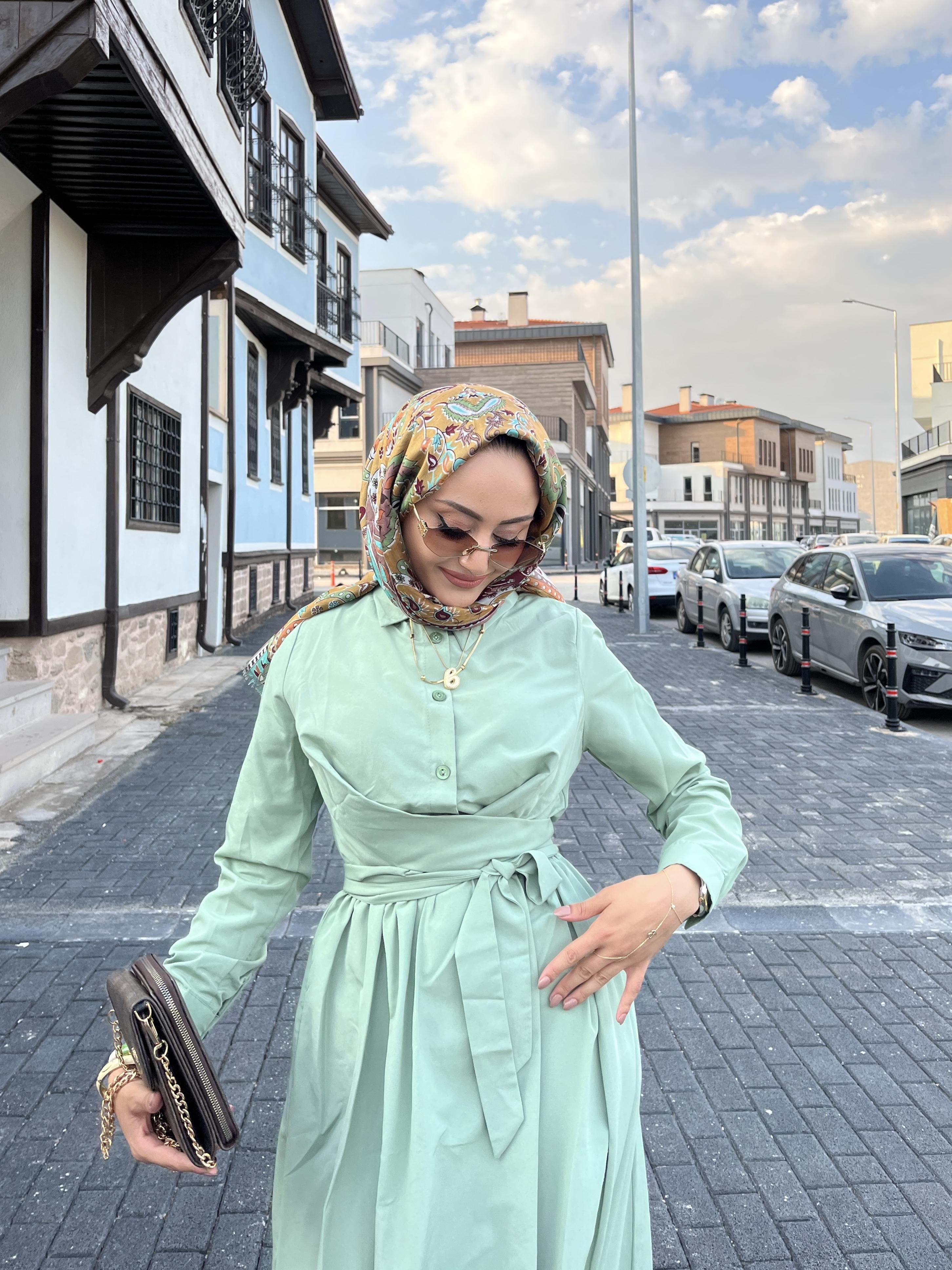 Kendinden Kuşaklı Yandan Cepli Yazlık Elbise